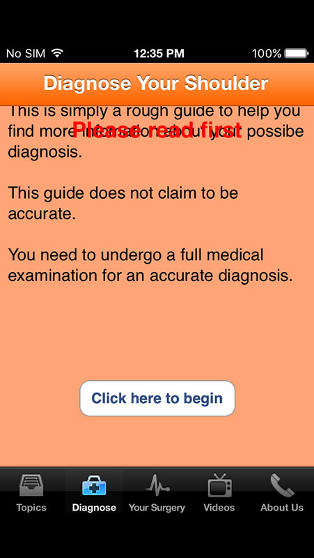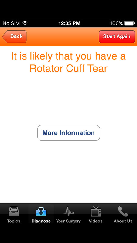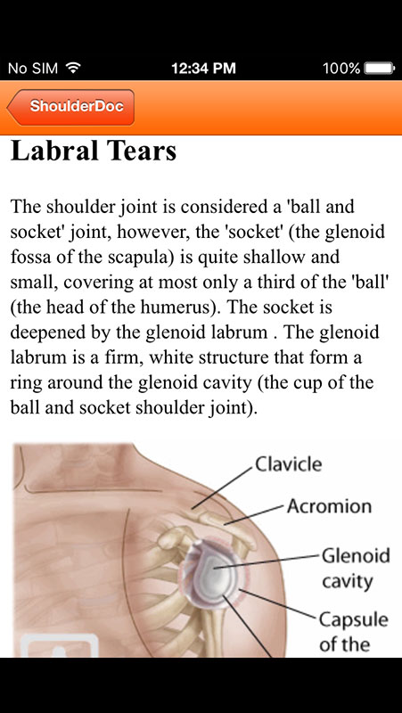 Just like the website does, ShoulderDoc app also provides detailed information about a multitude of shoulder conditions using a combination of text, images, animations, and videos, as well as 'Diagnose' section that assists patients in self-diagnosis of their shoulder problems. The app is available for free download and use, however, only on iOS devices.