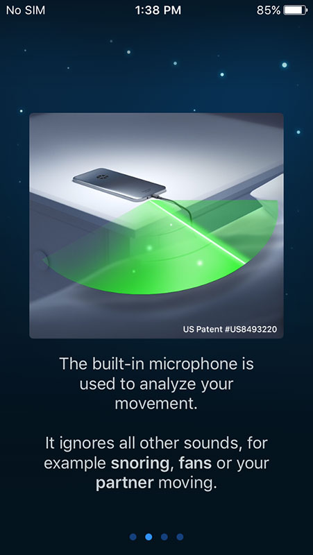 As you sleep, the app detects your movement and noise throughout the night using the sensors in your phone (the accelerometer inside my iPhone in this case) to determine in which sleep phase (deep sleep, light sleep, or wake phase) you're currently are.