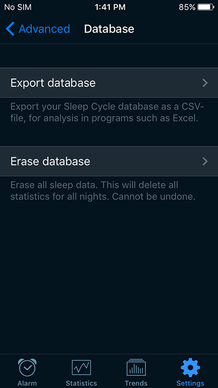 Users can export Sleep Cycle database in CSV format, which doesn't require a premium subscription, only an email account set. The app also includes reminders, but they won't remind you to set the alarm every night, which is quite strange.