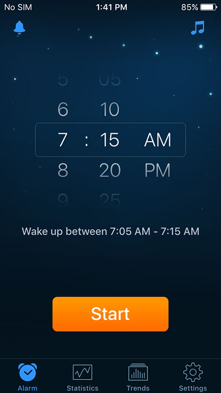 Sleep Cycle app will trigger the alarm during your lightest sleep within 30 minutes before the wake time you set. For example, if you set your alarm for 7:15 a.m., the app will monitor your movement and turn on the alarm when you're in the lightest phase of your sleep between 6:45 and 7:15.