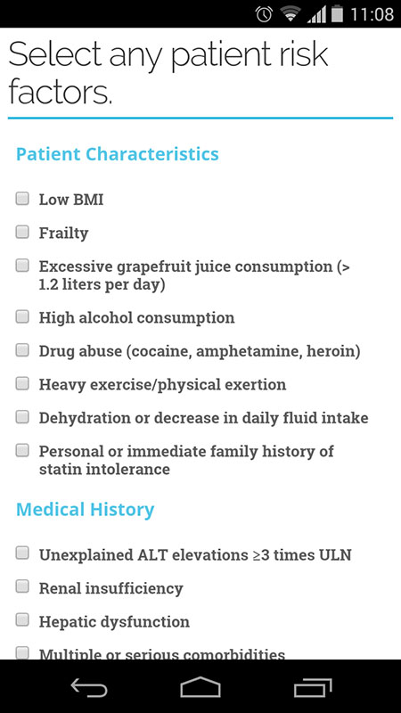 Benefit: Statin Intolerance app could be useful to all clinicians to assess, treat, and manage patients with possible statin intolerance, particularly patients with statin induced myopathy.