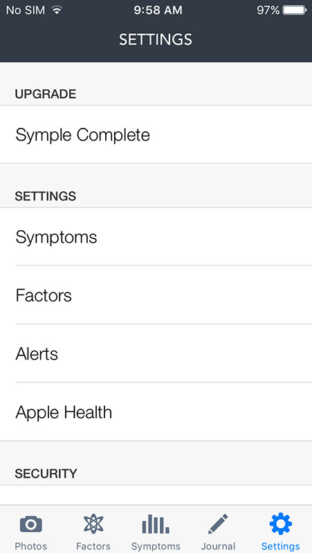 Users can add notes into Journal, which is more convenient way to gather all symptoms, add more details and track them with ease, but this is available only in paid version of the app. However, even without Journal, Symple app works pretty well. But, if you want to upgrade, simply tap on Settings and choose Symple Complete.