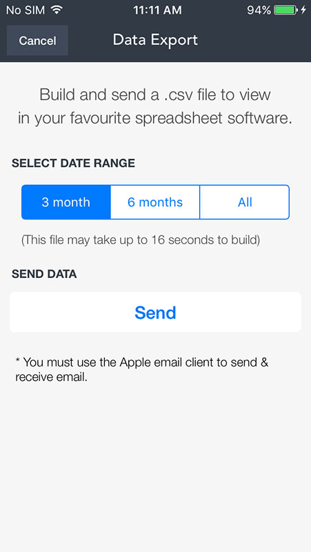 Two great options you'll also find here are ability to back up or restore your data, and to export your data in .csv format, to view it in spreadsheet format outside the app.