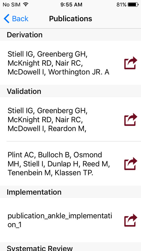 One thing that the Ottawa Rules app is missing is information on the likelihood ratios for each rule. You can find it in the linked articles, but it would be much better if it's within the app (Rules) as well.