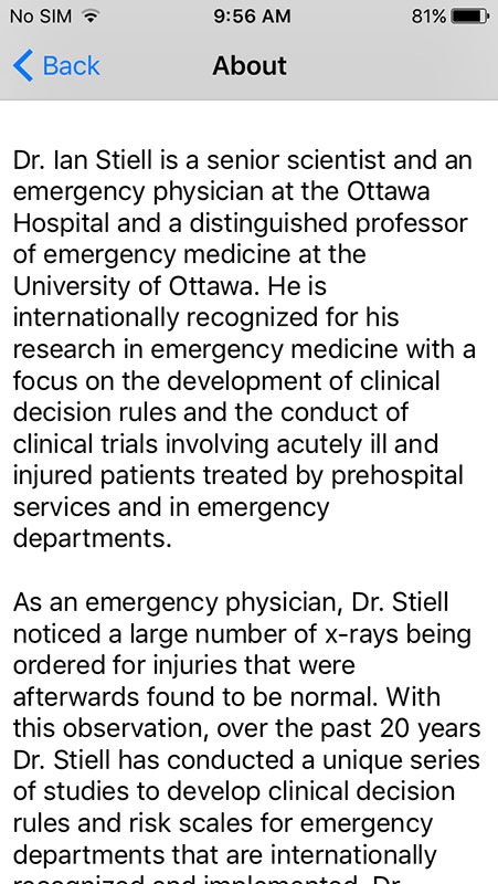 Additionally, the Ottawa Rules app is part of a research study at Ottawa Hospital, but this is completely optional, which means that users can download and use the app without being part of the research study.
