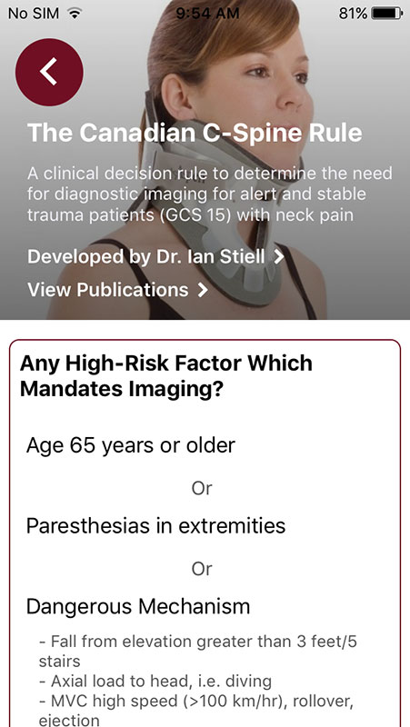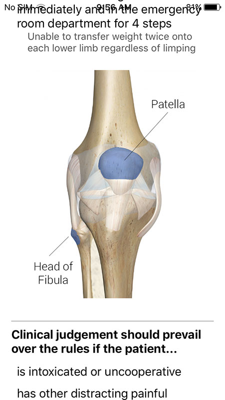 Benefit: The app might be particularly useful to emergency medicine, primary care and orthopedics providers who treat patients with spine, ankle and knee injuries