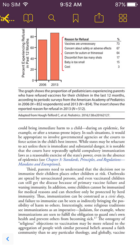 Just like the textbook, the app provides thorough information on every licensed vaccine in the United States, the rationale behind vaccine recommendations, advice on how to address concerns about vaccines, standards and regulations, and much more.