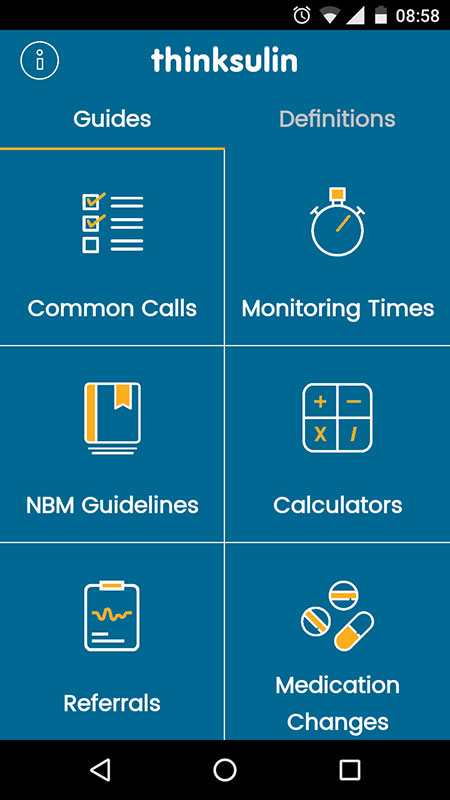 Thinksulin is a point-of-care app that contains many clinical practice guidelines deployed as checklists and medical calculators within a user-friendly app interface.