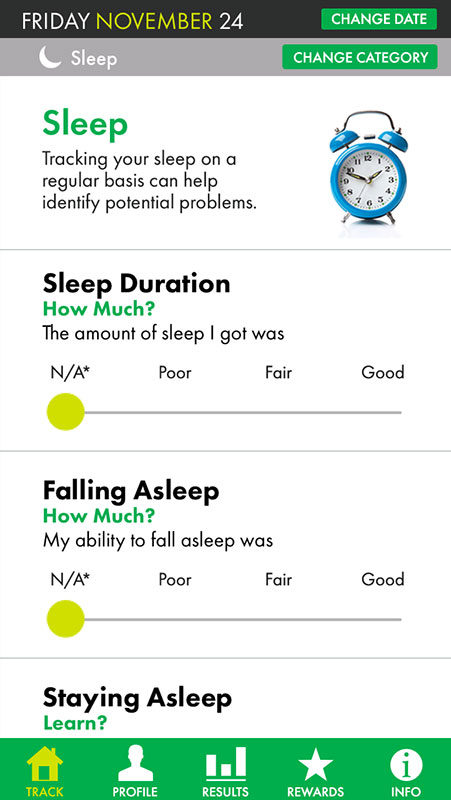 Also, the app uses qualitative assessment in places where numeric values would be a better choice (sleep duration and nutrients).