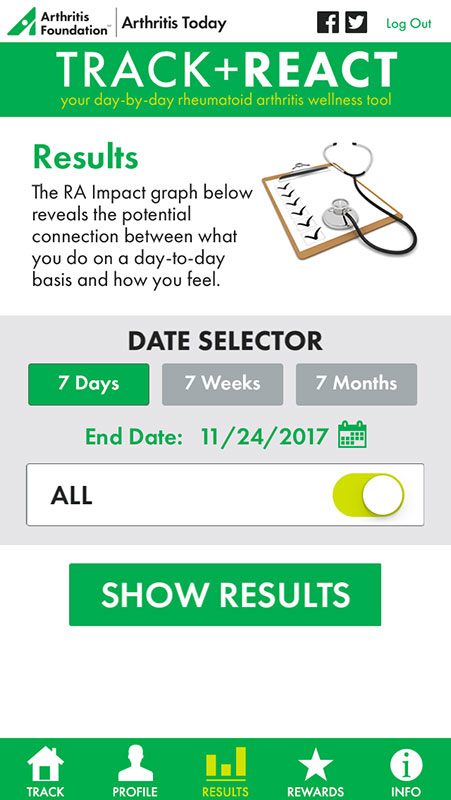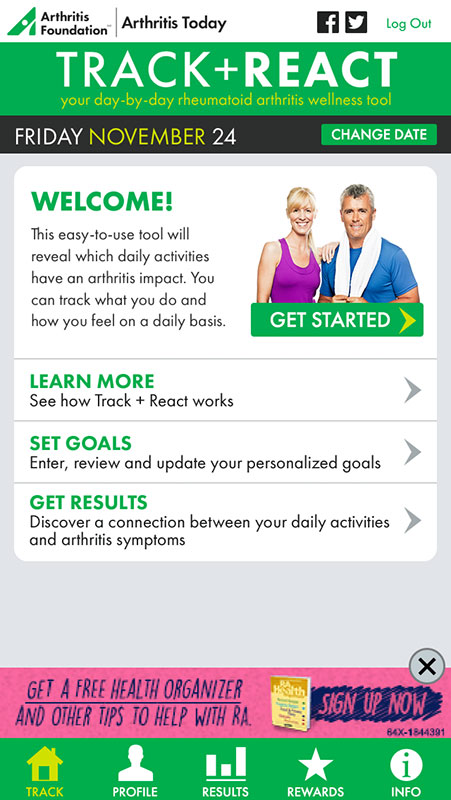 The Arthritis Foundation developed TRACK + REACT app for people who live with one of the forms of arthritis, with a goal to help them identify the patterns between their activities and their arthritis symptoms in order to better control and manage their condition.
