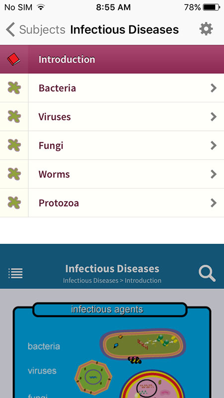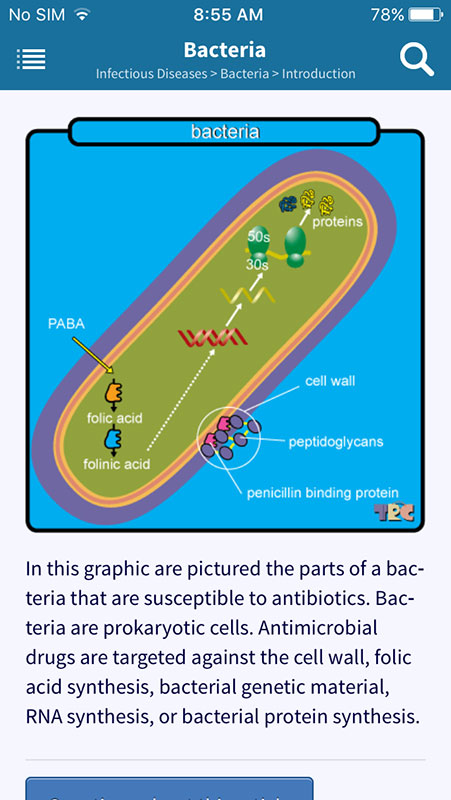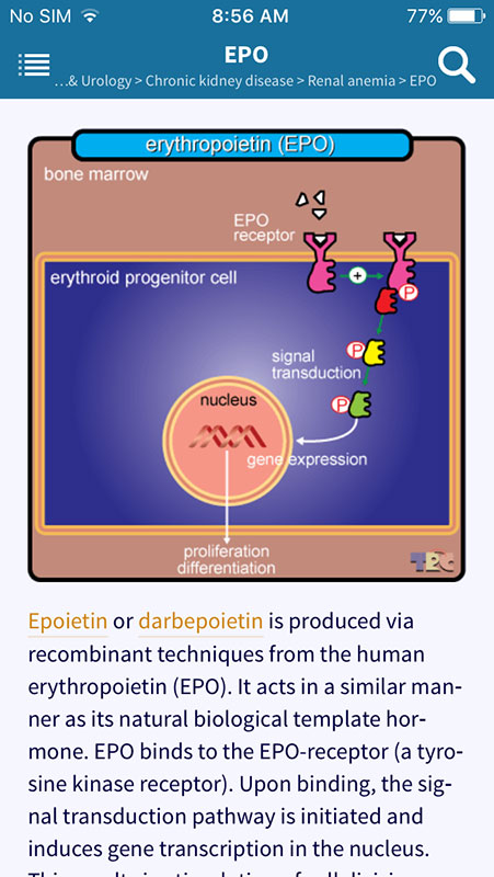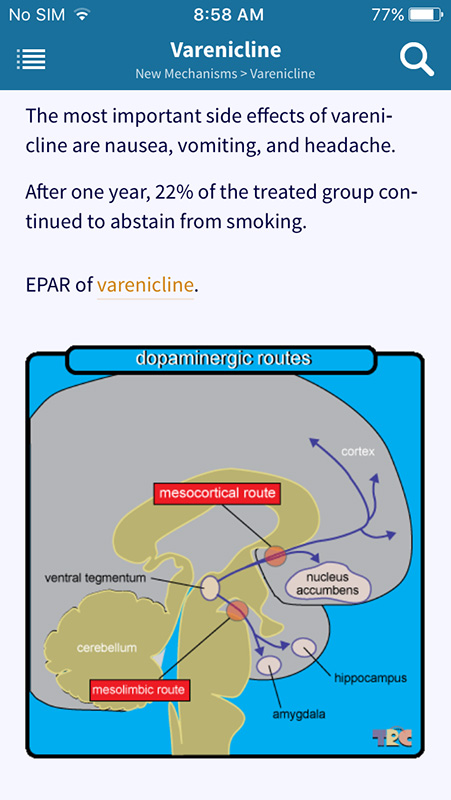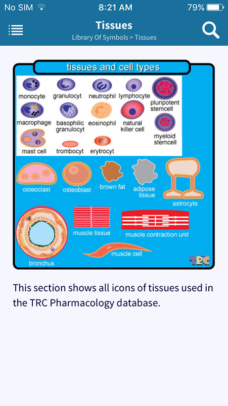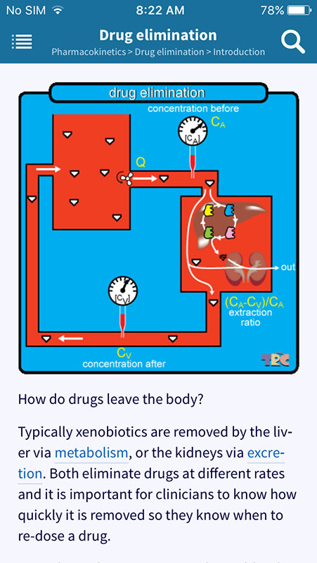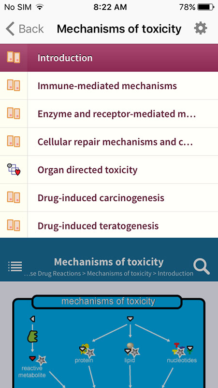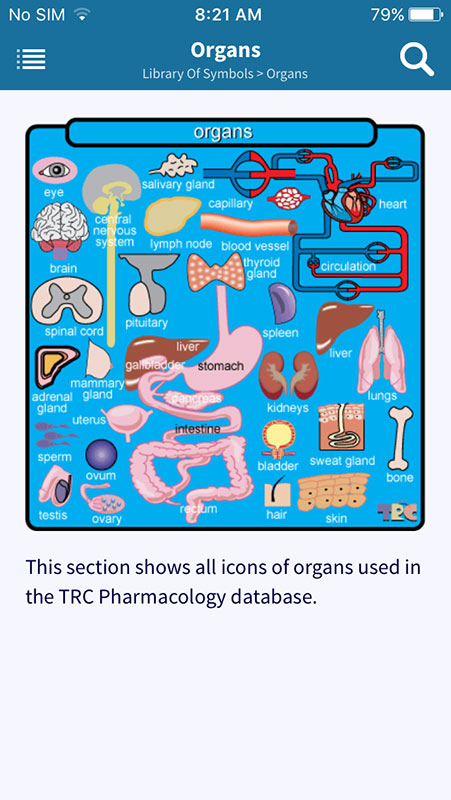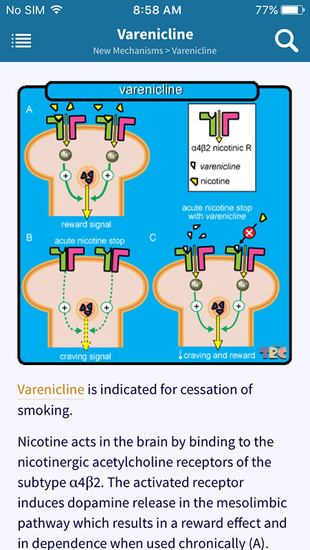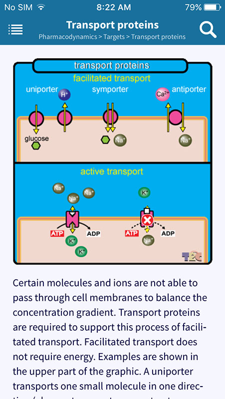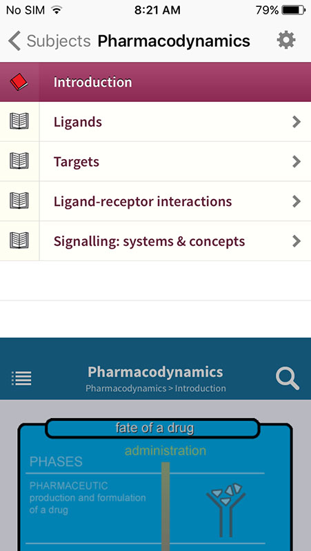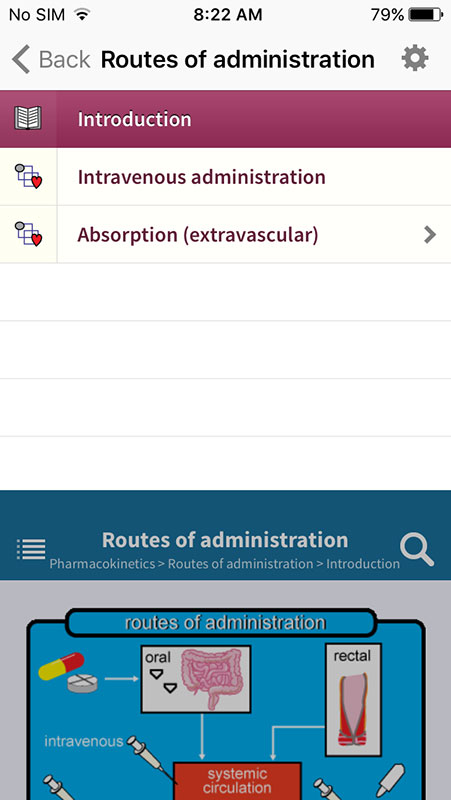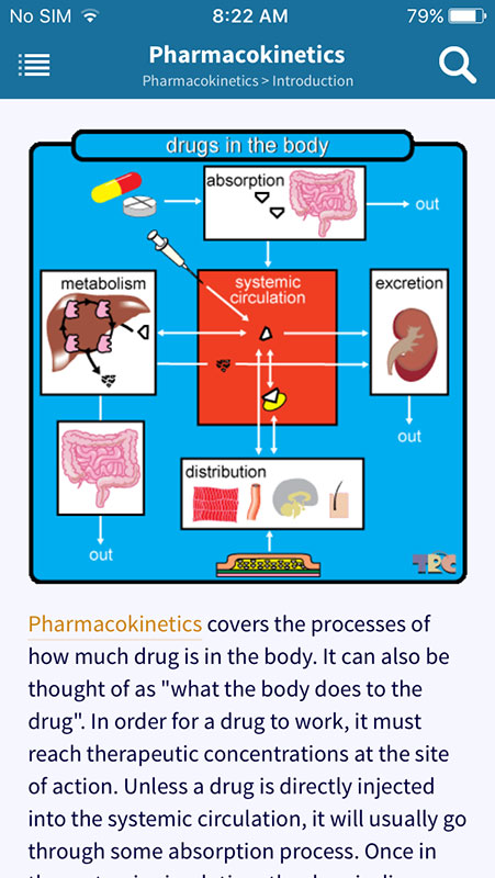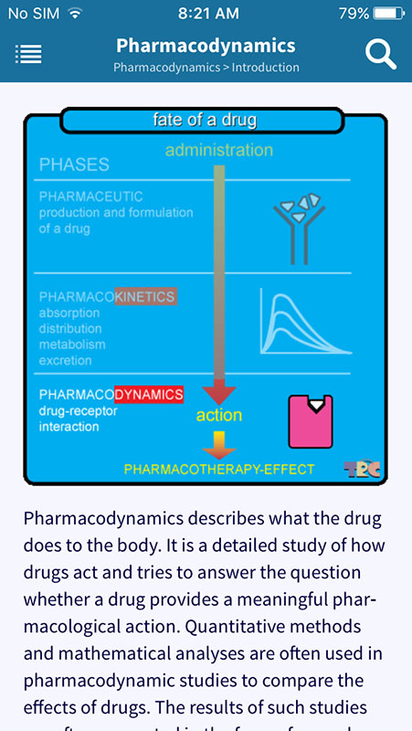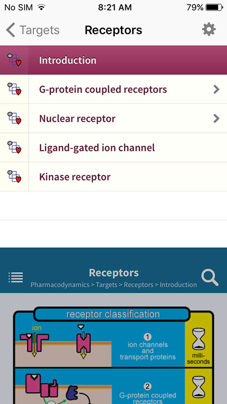 Each section contains detailed illustrated diagrams, which contribute to a better understanding of drug mechanisms. You can zoom in by simply pinching your screen. Diagrams don't lose any of their quality once they're enlarged.