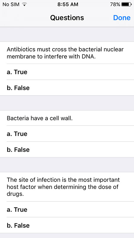 While pharmacodynamic and pharmacokinetic topics don't contain questions, they provide impressive content, which is definitely a highlight of this app.
