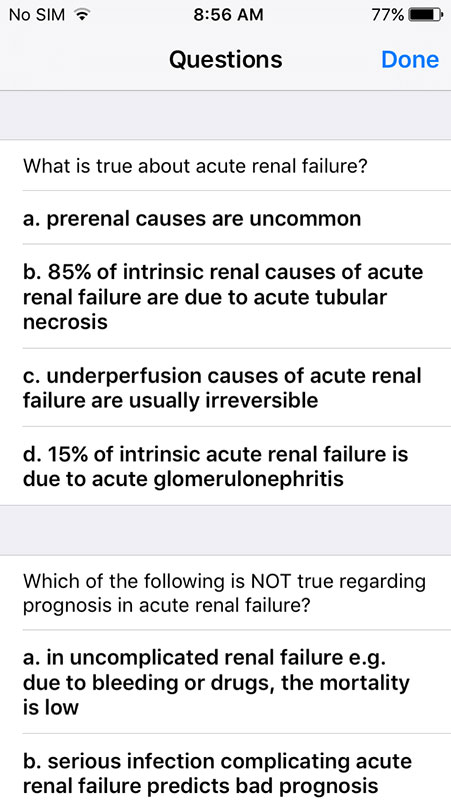 The TRC app is also a learning or self-study tool that allows medical students and residents to test their knowledge by answering the short questions, which are available at the bottom of each article within Pharmacology and Diseases section. Each questionnaire contains answers, which help students in their learning process.