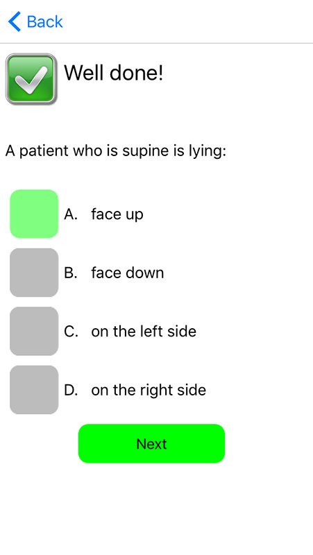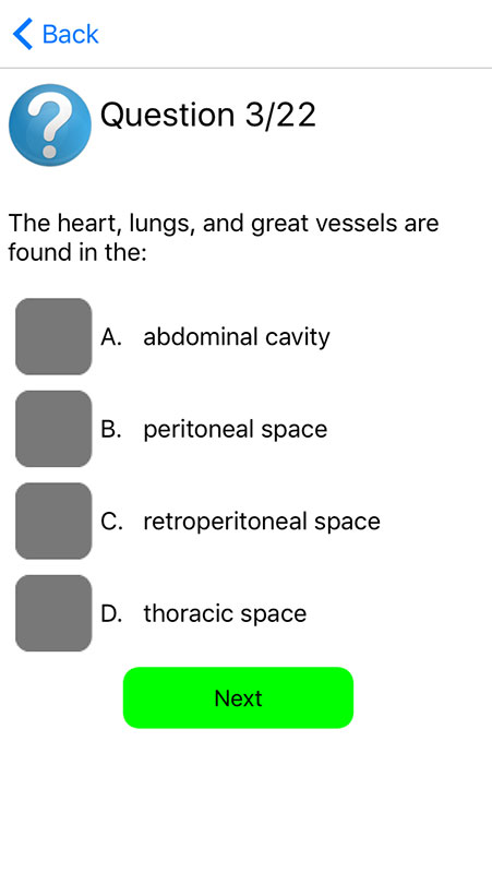 If you want to test your anatomy knowledge, Visual Anatomy Lite app also includes quiz with 22 questions, each offering four possible answers. The quiz is self-paced and automatically scored, and the users can repeat it as many times as they like.