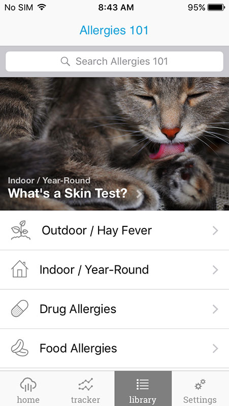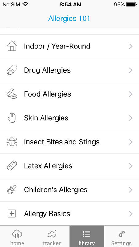 The home page also contains featured articles, slideshows, and videos on specific allergy types that can be found in from the Library or Allergy 101 section. This section contains all the allergy information you need to become more knowledgeable about different kinds of common allergies.