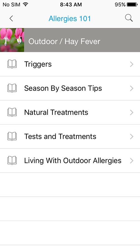 The app helps allergy sufferers prepare for each day with a personalized allergy and weather forecast, as well as a range of medical advice and tips that can be customized for specific allergies.