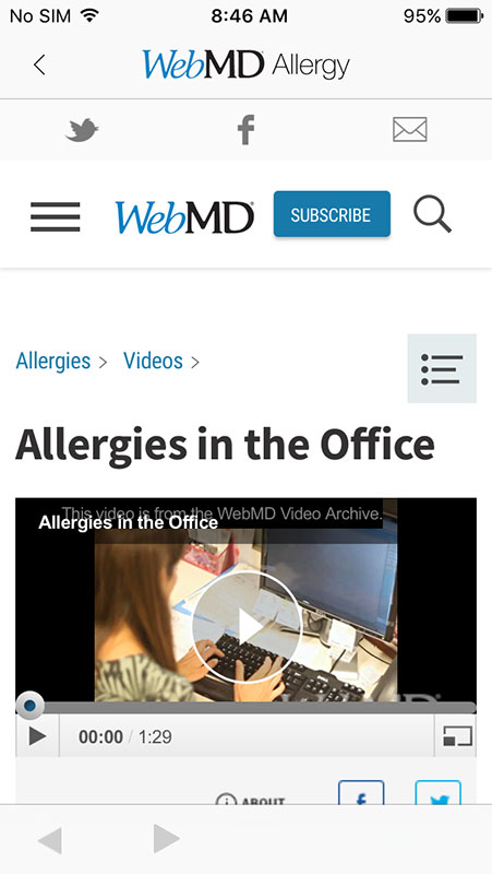 - Plenty of useful information about various types of allergies in a form of slideshows, videos, and articles