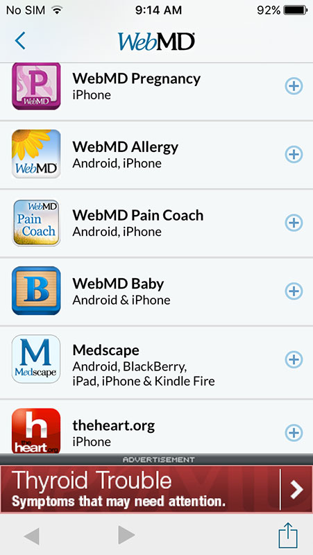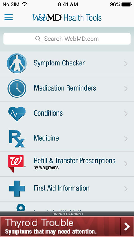 Just like the rest of online and mobile-based symptom checkers, WebMD app is not a substitute for an official doctor visit. It should be used only in informational and educational purposes.