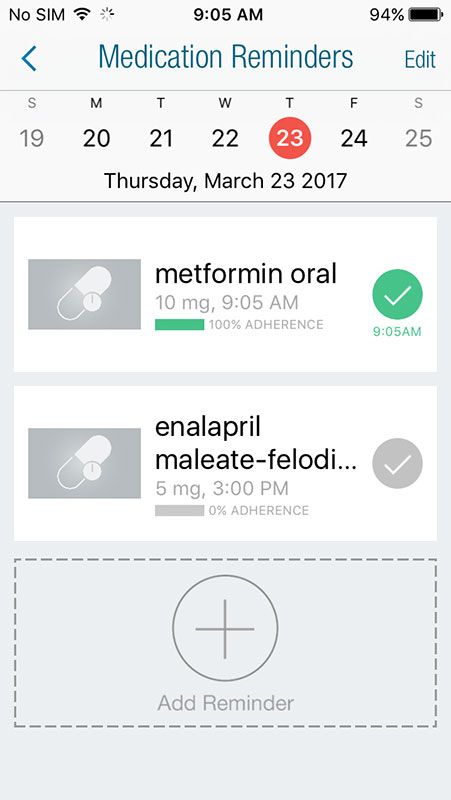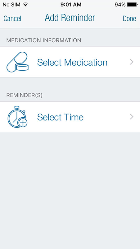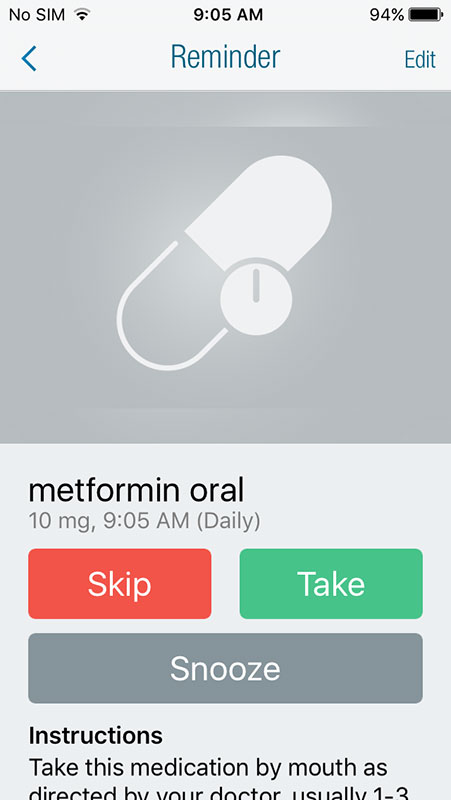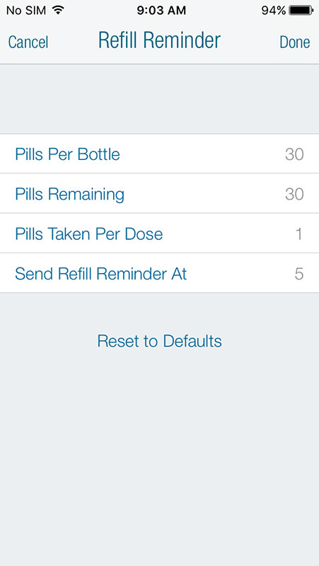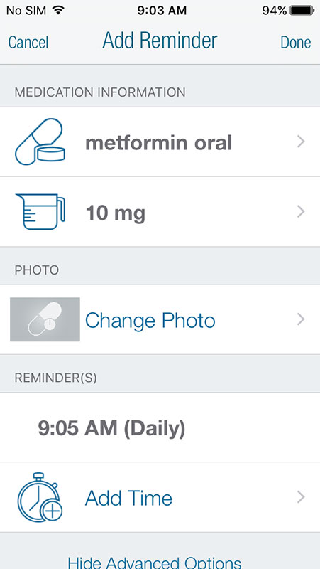 You can add doses and reminder times, medication images by taking the photo or selecting one from your phone's library, as well as refill reminders.