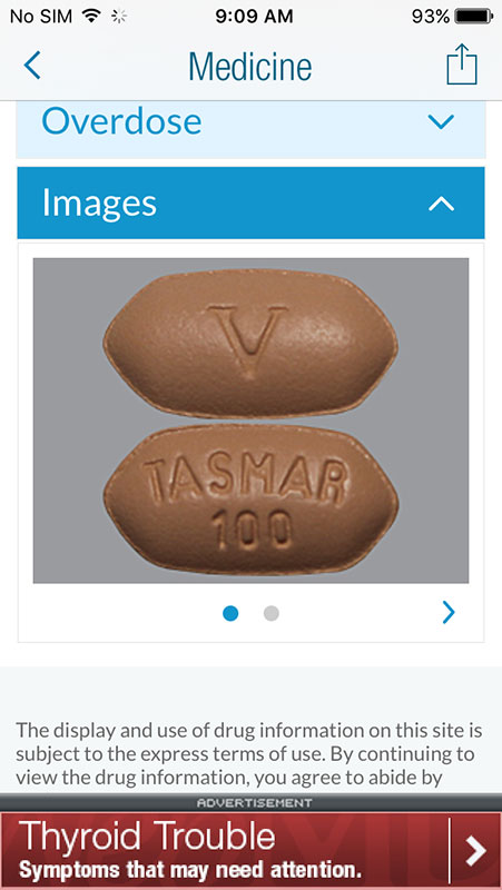 Medicine section is another great section that allows users look up information about various drugs, including description of the drug, side effects, interactions with other drugs, symptoms of overdose, etc.