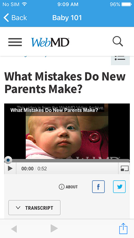Each of these categories is further divided into subcategories that provide textual content, as well as videos (such as in Ask the Pediatrician category) and slideshows.