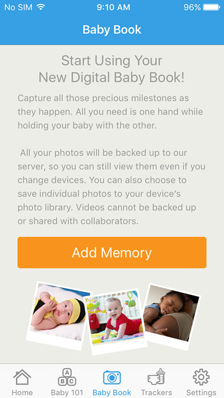 The Baby Book allows users to add memories by taking photos and videos, or importing them from their phone and store them in the Baby Book.