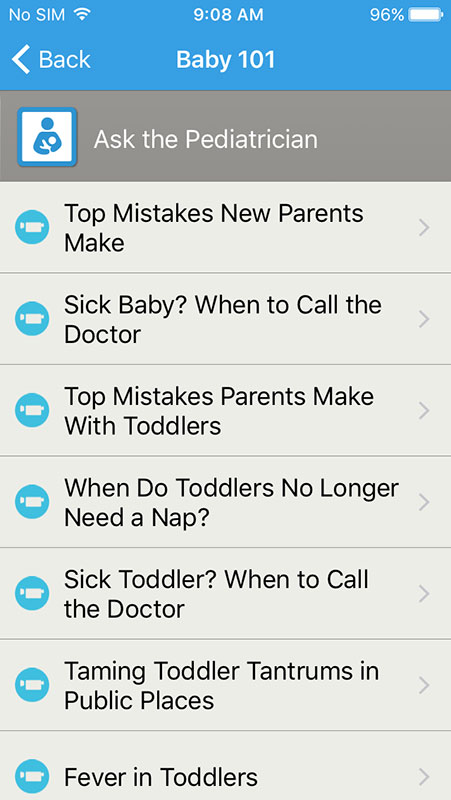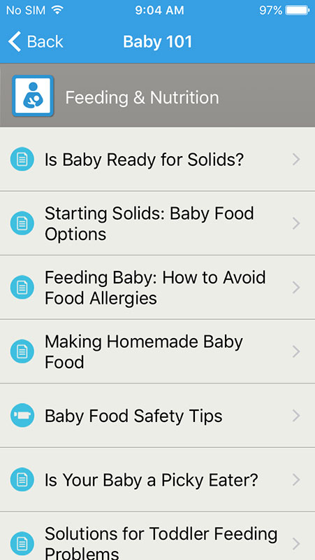 Baby 101 is a section where parents can find answers to various questions ranging from baby's health to parenting tips and development milestones. This section is basically a 'pocket pediatrician' that provides an extensive library of trusted, medically-approved content including 400 articles, 598 tips, and 70 videos.